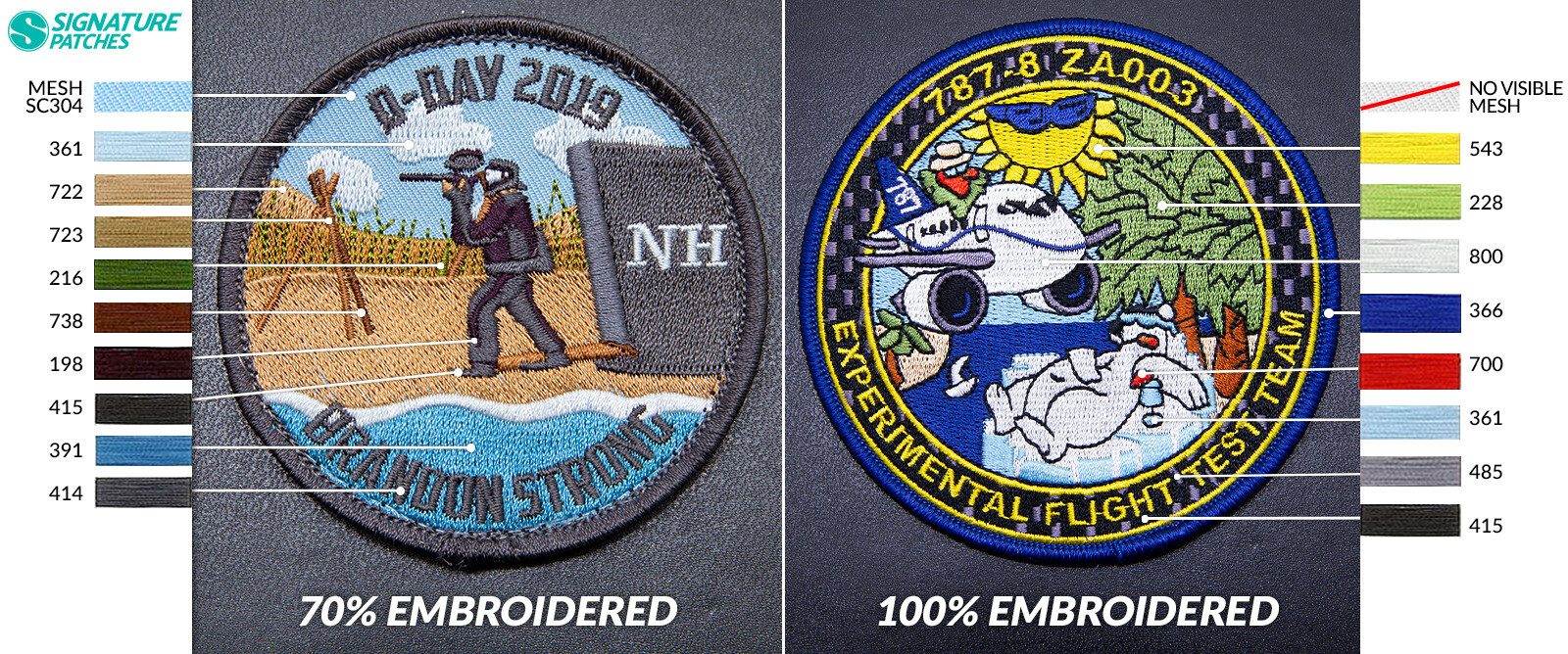 There’s a whole world of color right at your fingertips when you set out to design a custom embroidered patch. Here at Signature Patches, our thread color chart has 252 different options to mix and match, and an additional 72 mesh colors that can serve as a base for your design, but more on that in a minute.